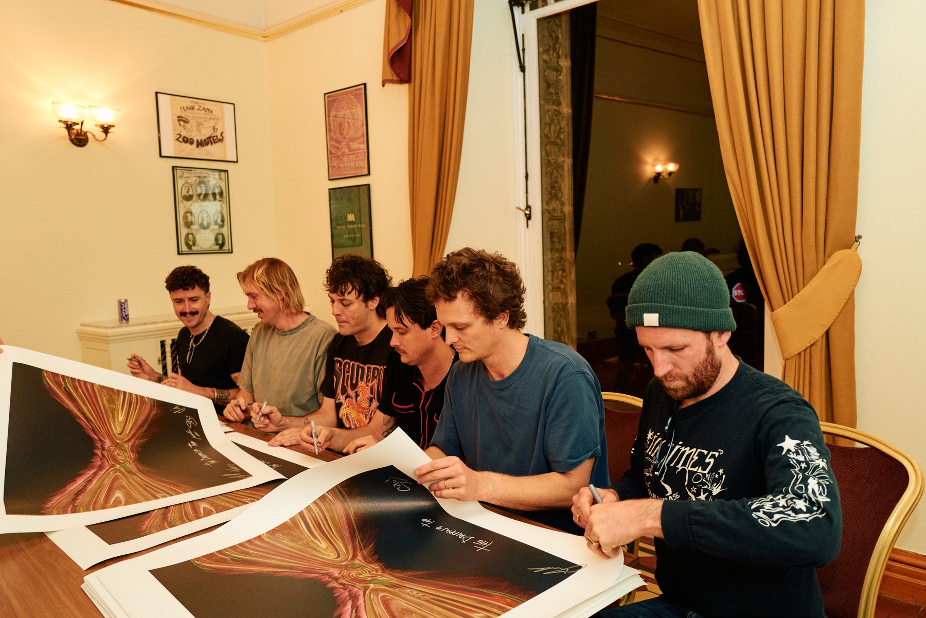 Limited Edition Soundwaves Artwork created from the audio of King Gizzard & The Lizard Wizard's 'The Dripping Tap.' The band hand signed these prints on November 4th, 2025 before their show at The Royal Albert Hall to support War Child UK.