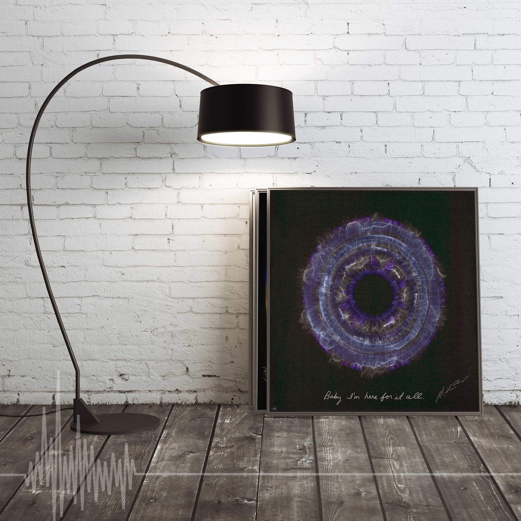 Our Originals measure 38″ x 38″ and often feature a lyric or the title of the song written by the artist in addition to their signature. These are much more limited edition – there is only one Original created per design. Originals sometimes come in alternate color palettes or wave designs to the prints.