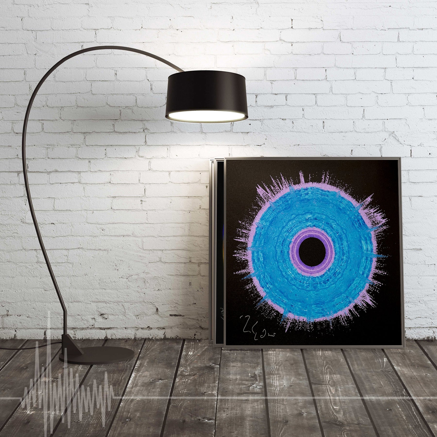 Our Originals measure 38ā³ x 38ā³ and often feature a lyric or the title of the song written by the artist in addition to their signature. These are much more limited edition ā there is only one Original created per design. Originals sometimes come in alternate color palettes or wave designs to the prints.Ā