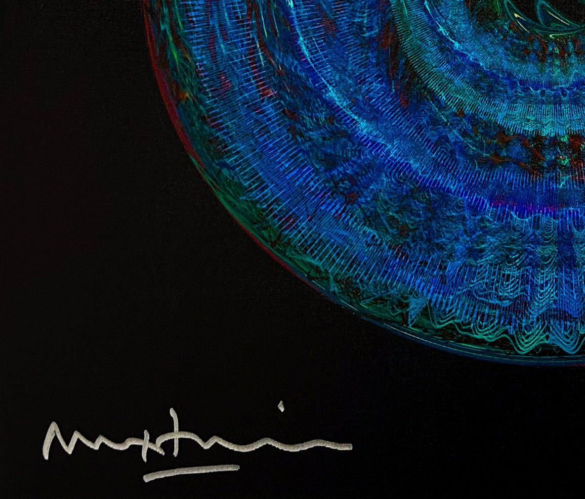Our Originals measure 38″ x 38″ and often feature a lyric or the title of the song written by the artist in addition to their signature. These are much more limited edition – there is only one Original created per design. Originals sometimes come in alternate color palettes or wave designs to the prints.