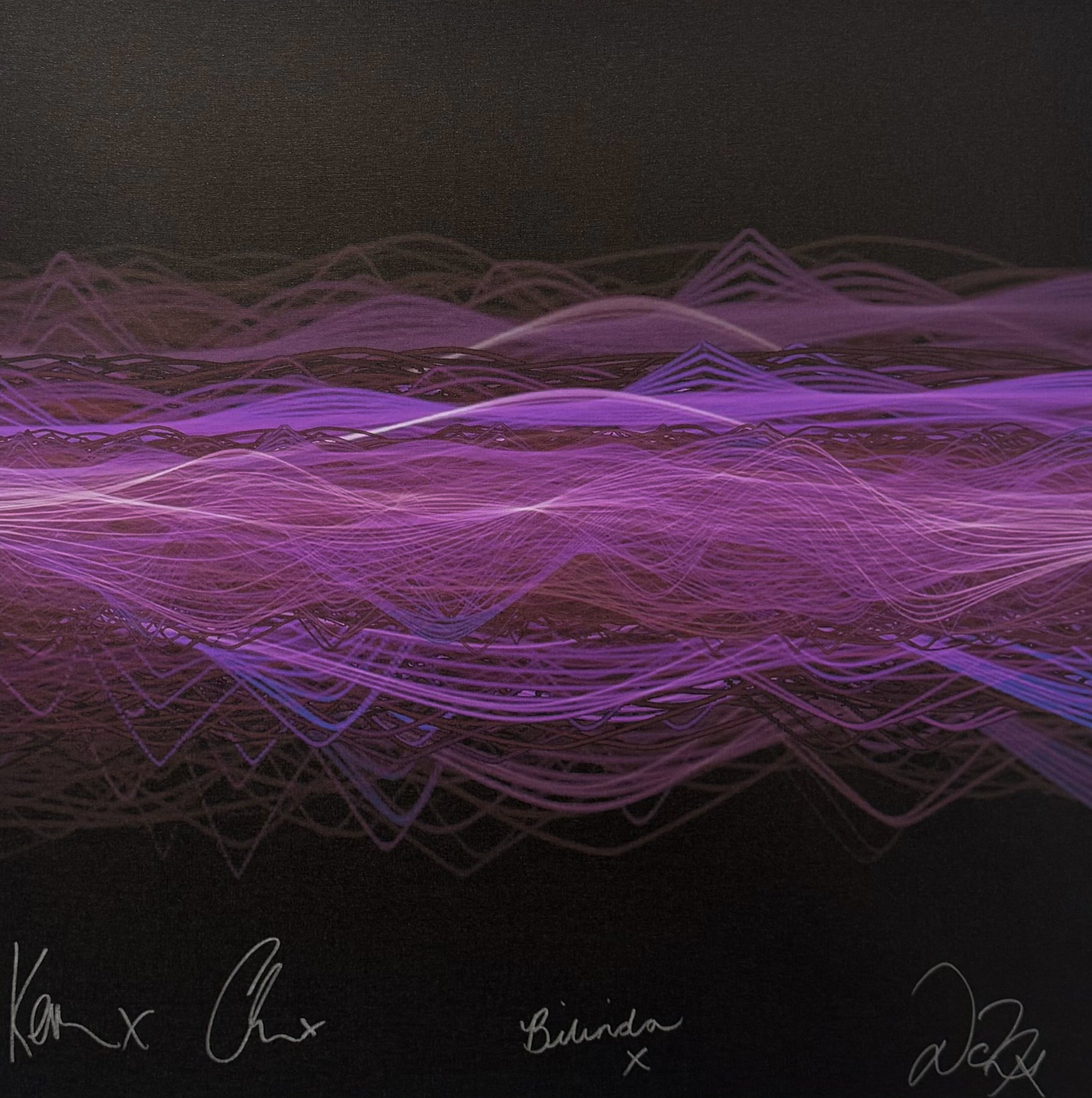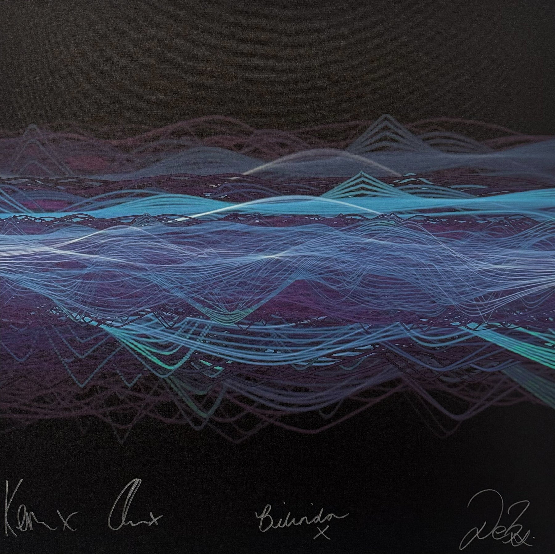Original Limited-Edition Soundwaves Artwork created from the audio of my bloody valentine's 'only shallow.' Kevin Shields, Colm Ó Cíosóig, Debbie Googe & Bilinda Butcher kindly hand signed these artworks before their show in Manchester, England on November 24th, 2025.