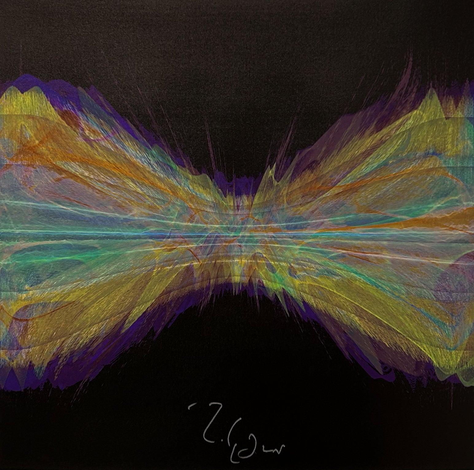 Our Originals measure 38ā³ x 38ā³ and often feature a lyric or the title of the song written by the artist in addition to their signature. These are much more limited edition ā there is only one Original created per design. Originals sometimes come in alternate color palettes or wave designs to the prints.Ā
