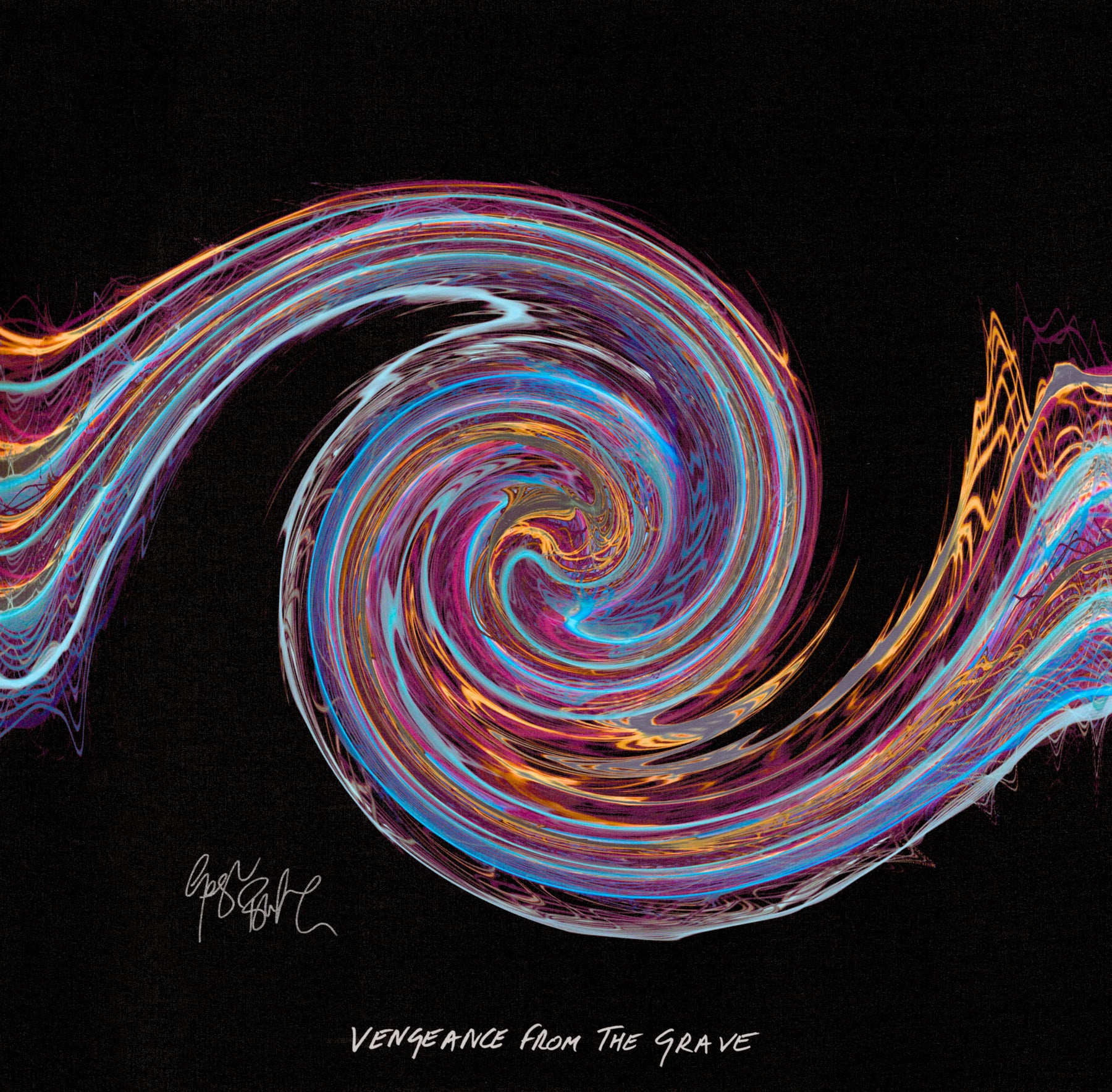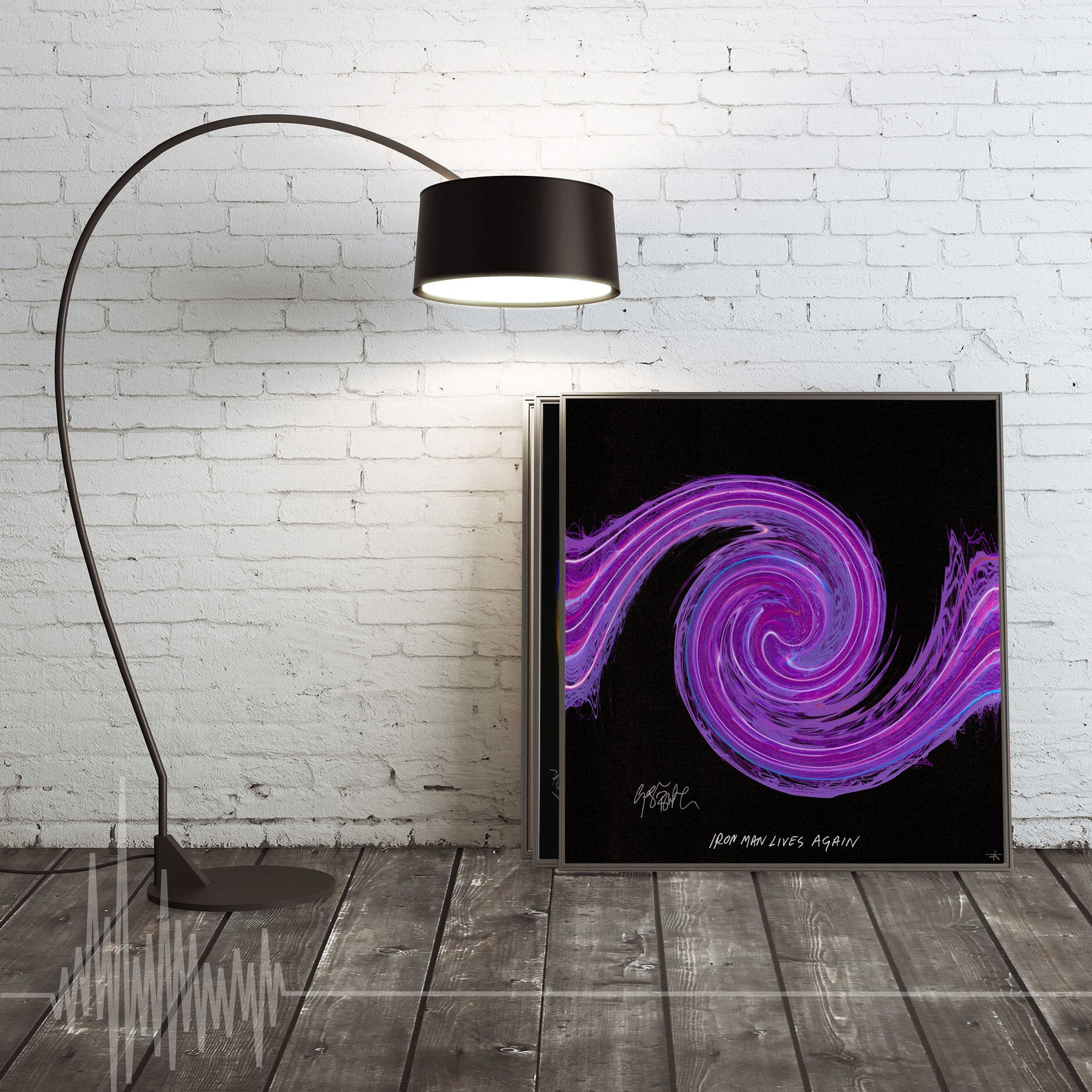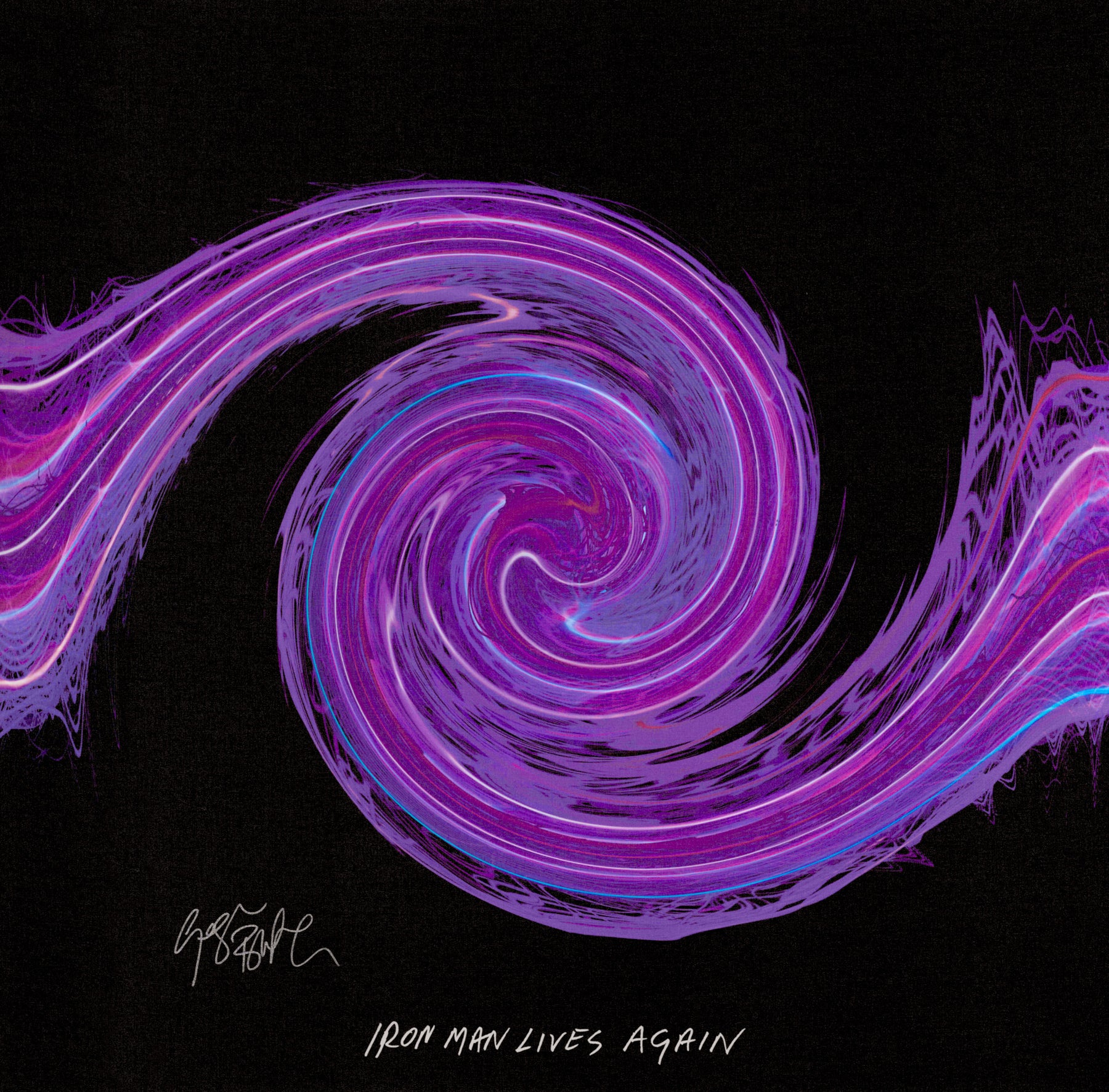 Original Soundwaves Artwork created from the sound waves of Black Sabbath's "Iron Man." Geezer Butler hand-signed each of these Original artworks in Nevada in October 2025 to support Sweet Relief Musicians Fund.