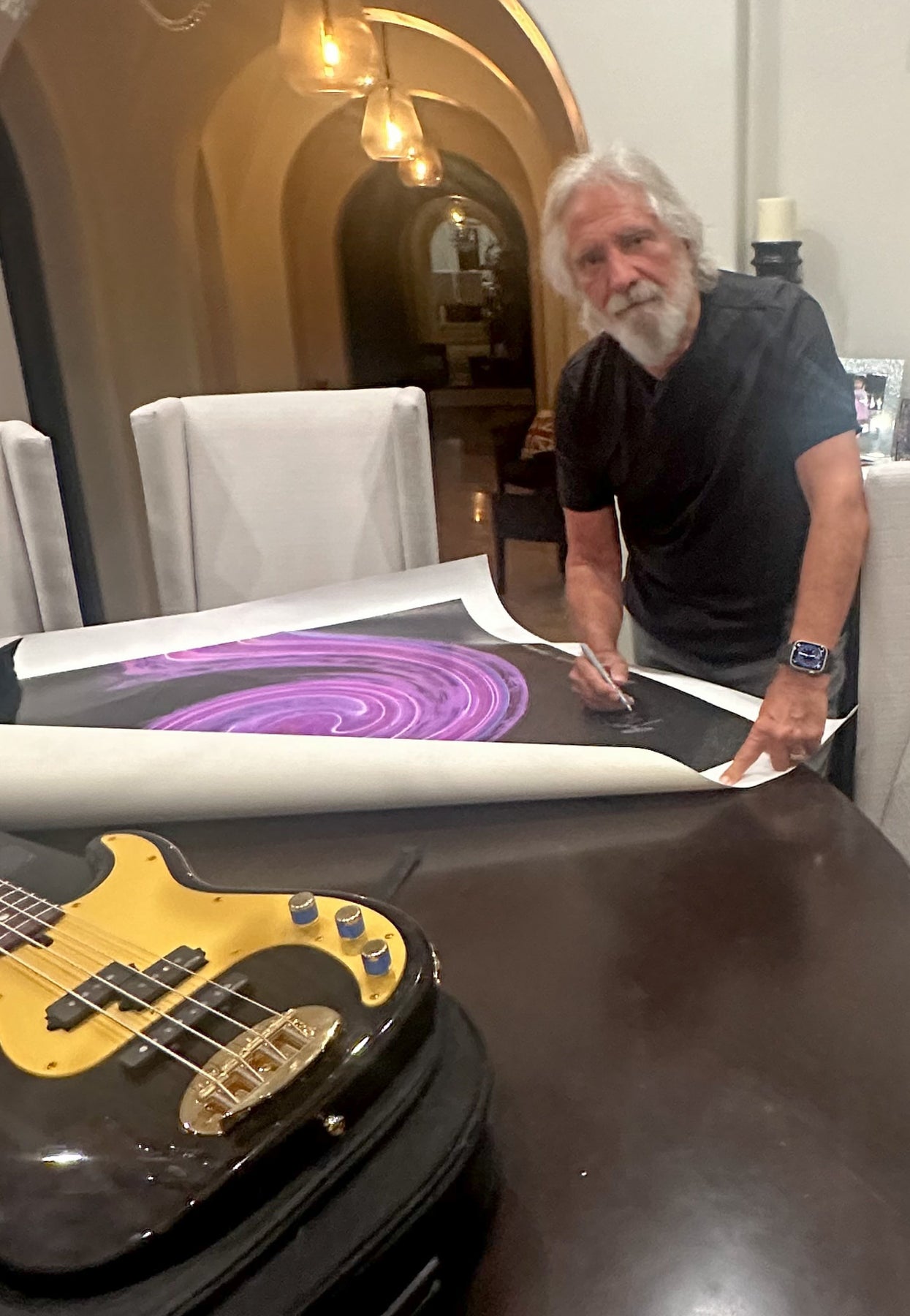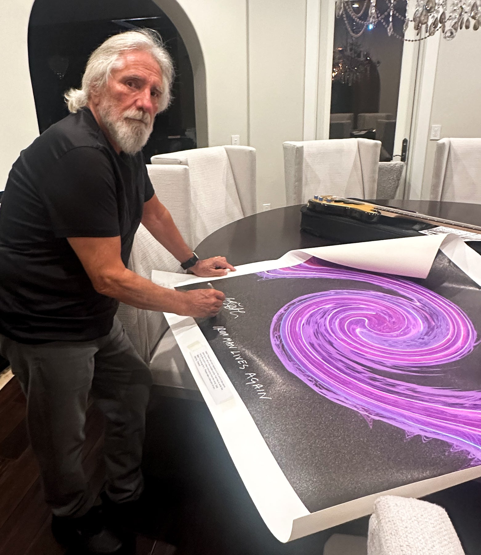 Each signed print measures 24″ x 24″ and is hand signed by the musician. They are part of a larger run of prints, typically with 50-100 copies signed in total. Our unsigned prints, which come in a standard and a mini size, feature the same design as the signed print, but do not have the musician's autograph. They are still limited edition and are signed by Soundwaves Art creator, Tim Wakefield.