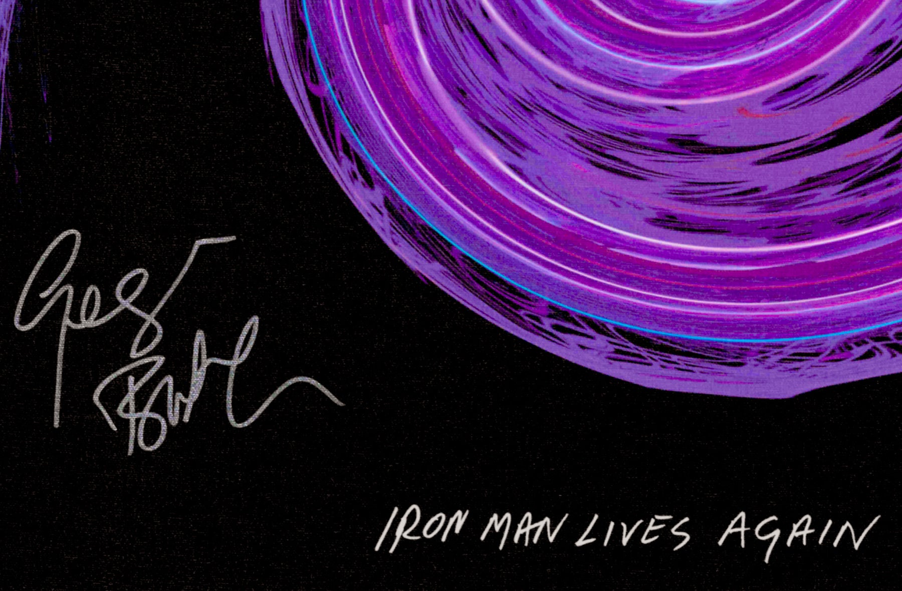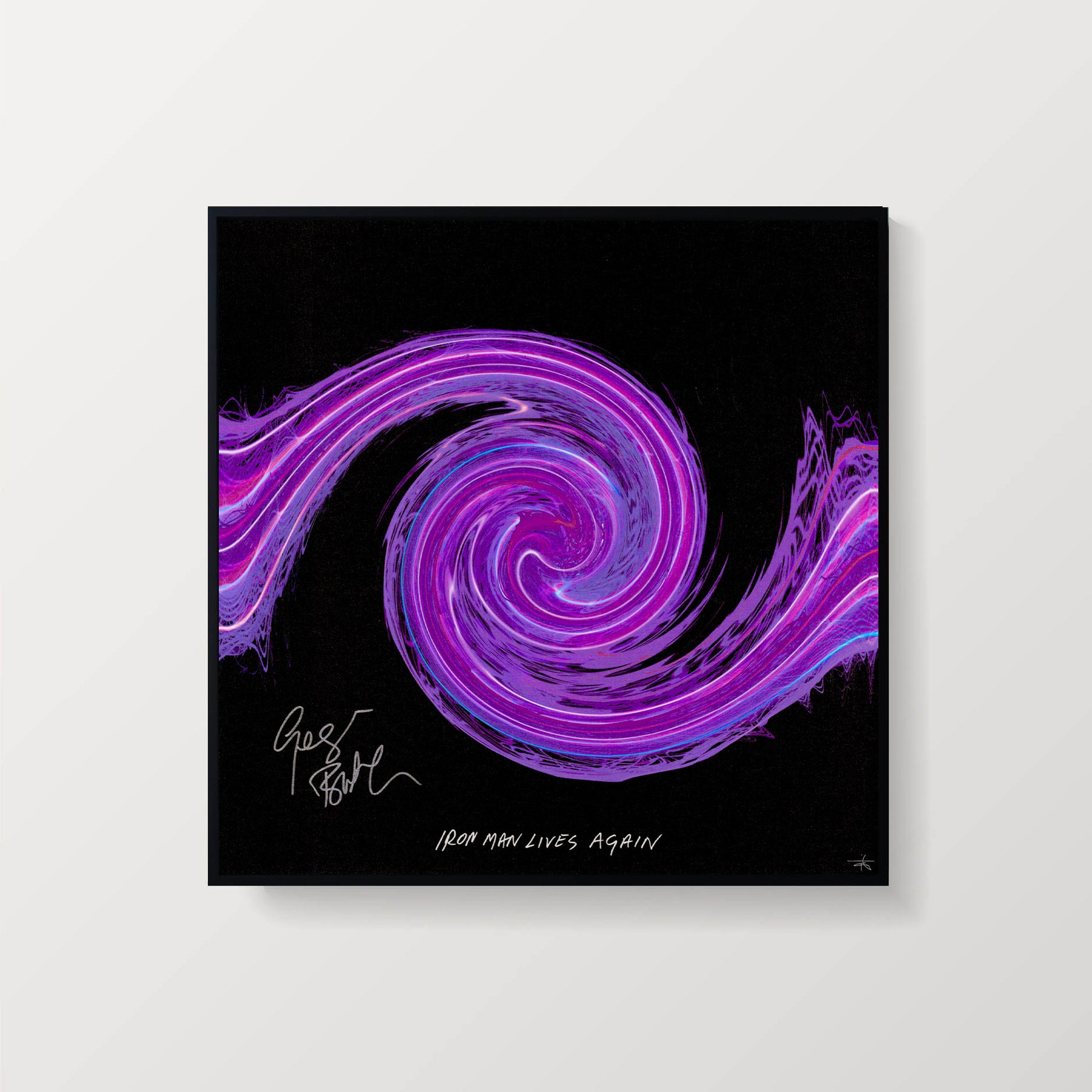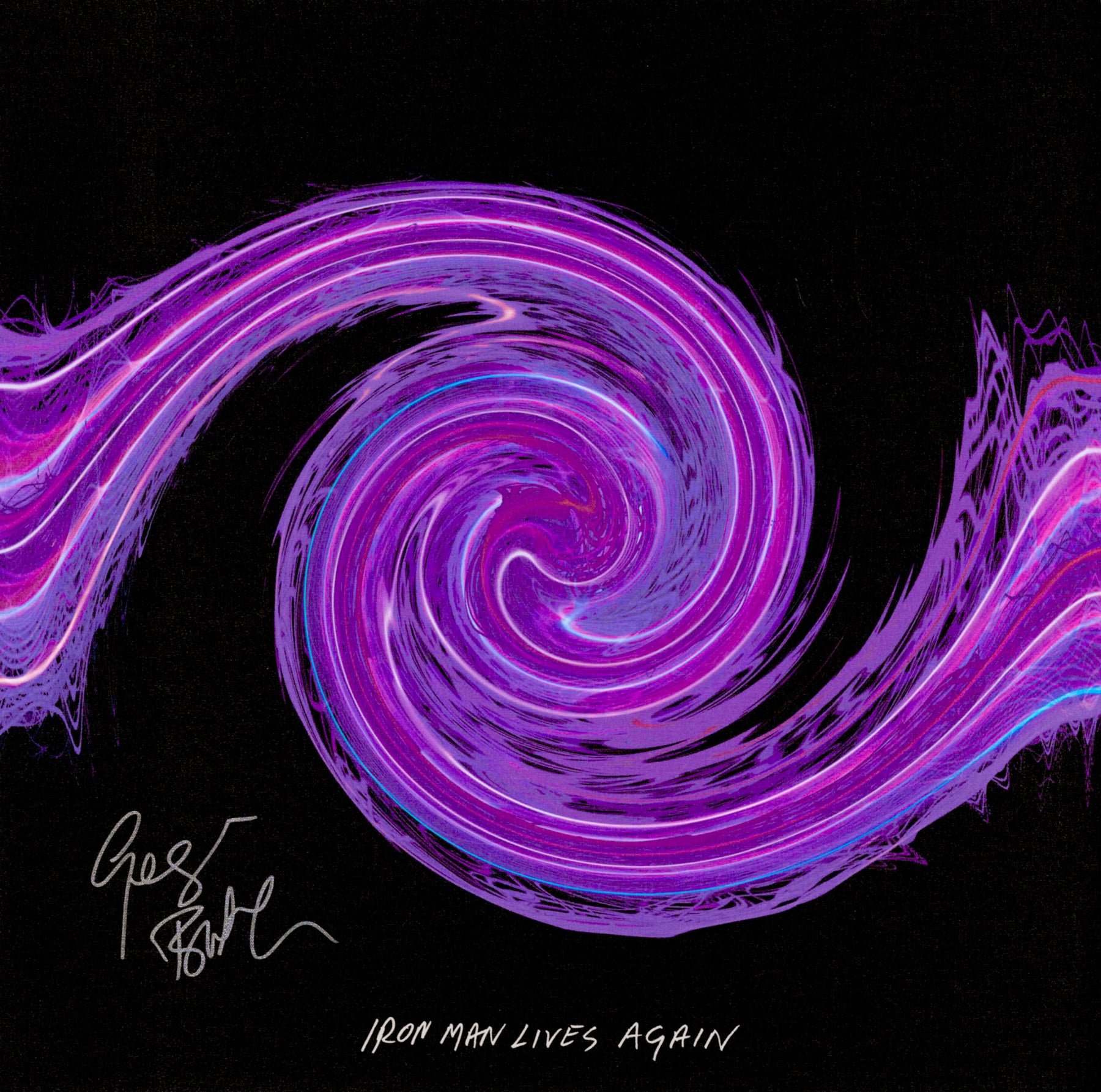 Limited-edition Soundwaves Artwork created from the sound waves of Black Sabbath's "Iron Man." Geezer Butler hand-signed these artworks in Nevada in October 2025 to support Sweet Relief Musicians Fund.