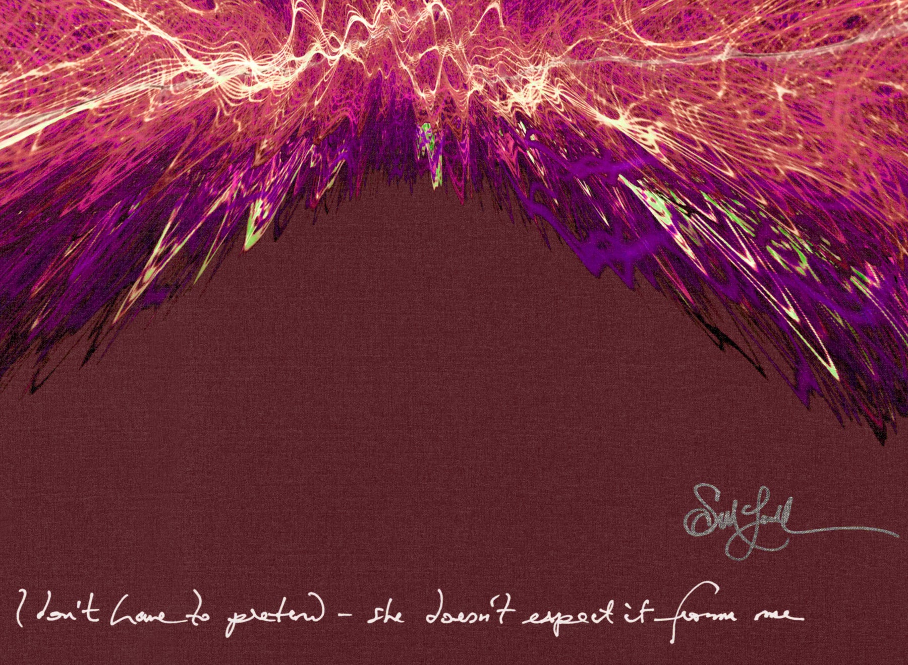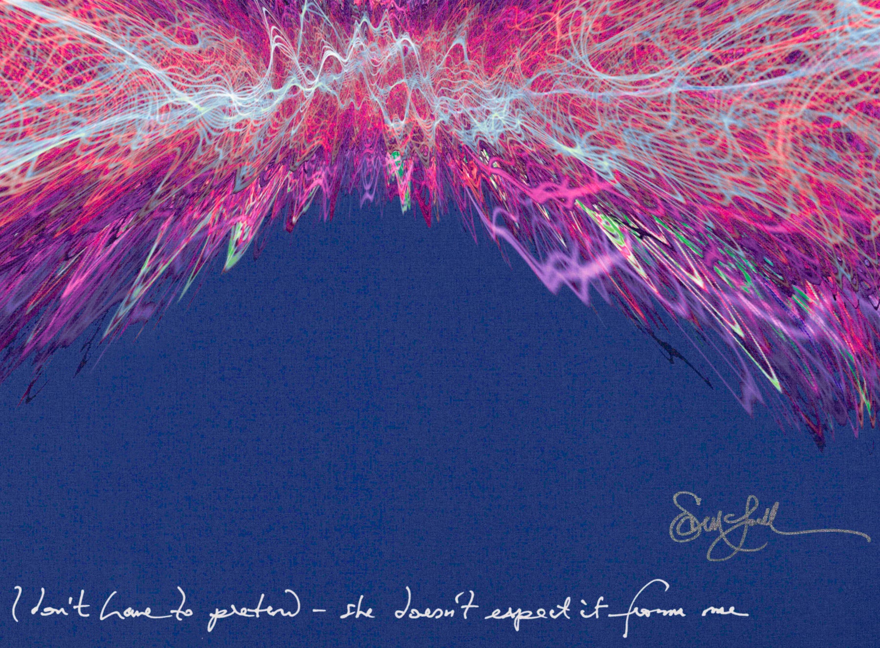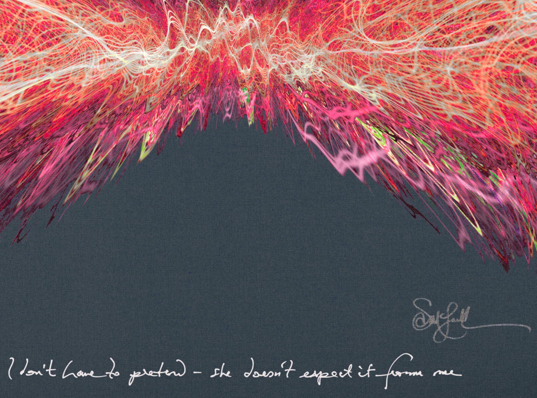 Each Original piece features a handwritten lyric by Sarah that was digitally added: "I don't have to pretend she doesn't expect it from me".