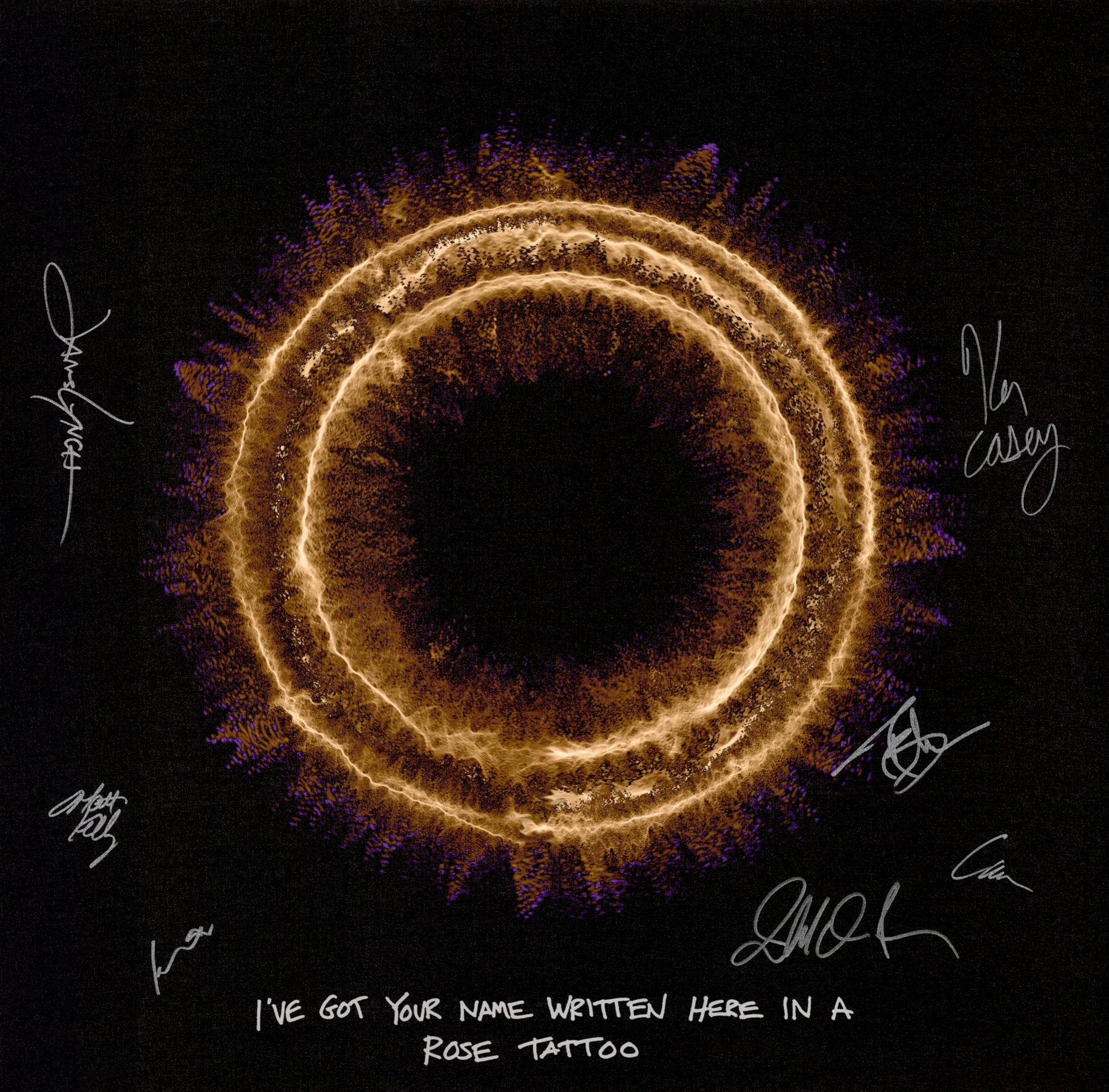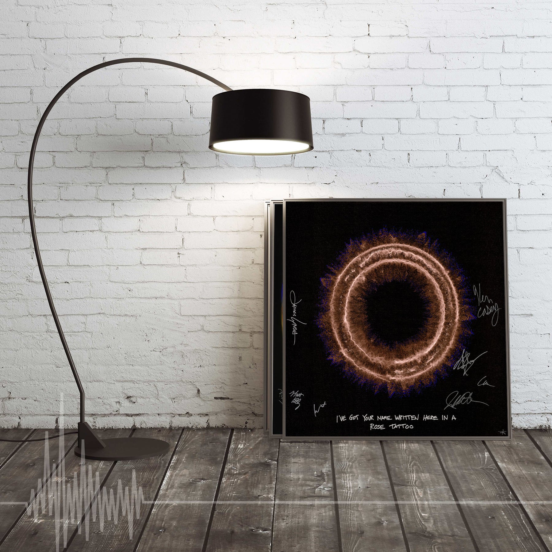 Our Originals measure 38″ x 38″ and often feature a lyric or the title of the song written by the artist in addition to their signature. These are much more limited edition – there is only one Original created per design. Originals sometimes come in alternate color palettes or wave designs to the prints.