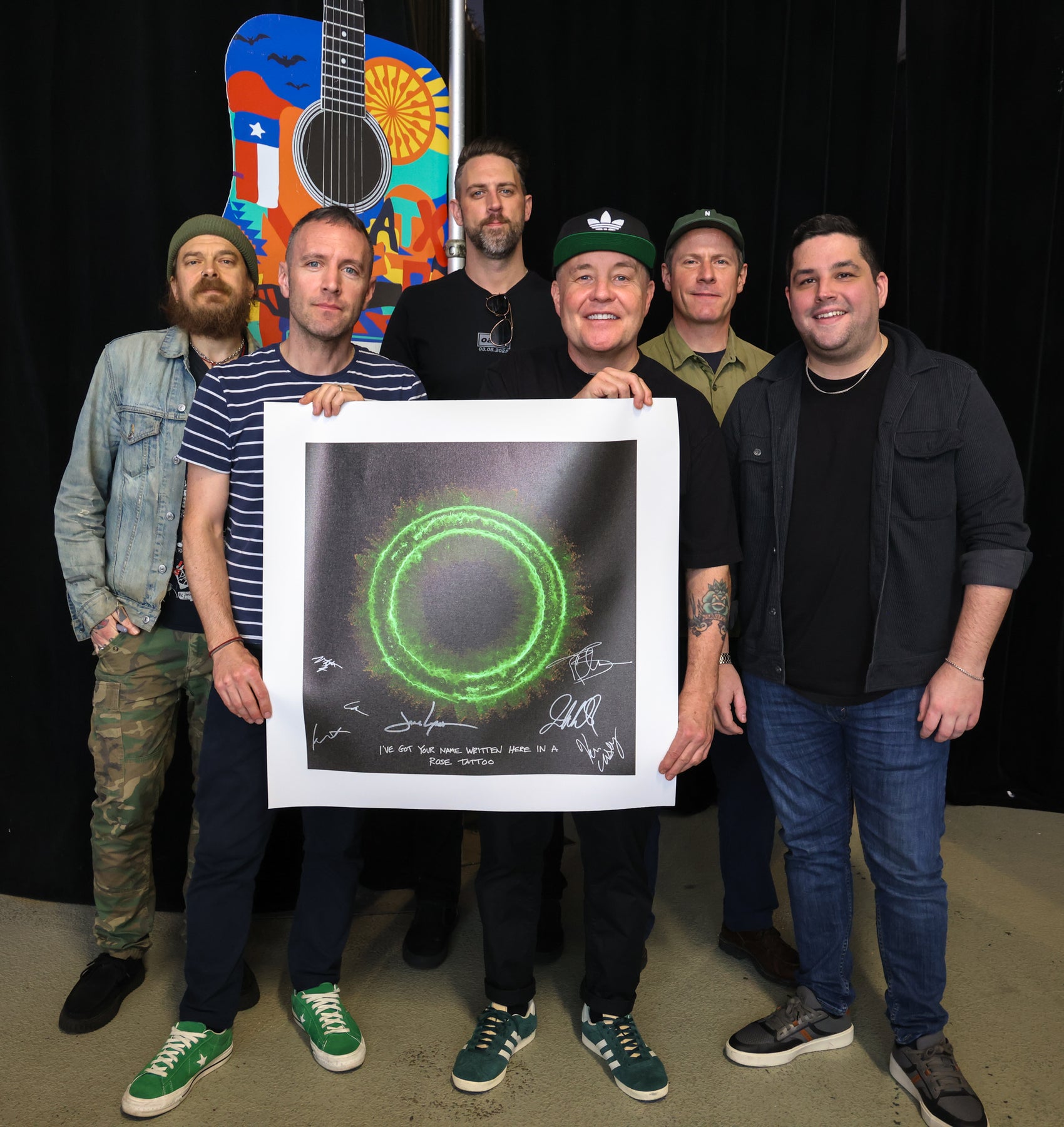 Although the listing may say it was signed in a specific location like Canada or London, we are based in Texas. We work with musicians to sign where ever is best for them, which means almost anywhere!