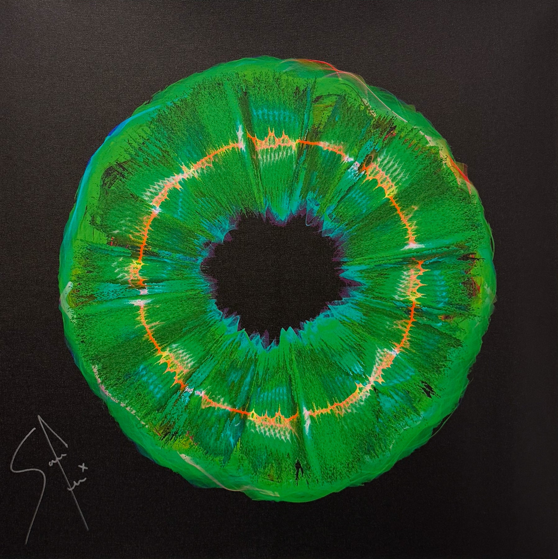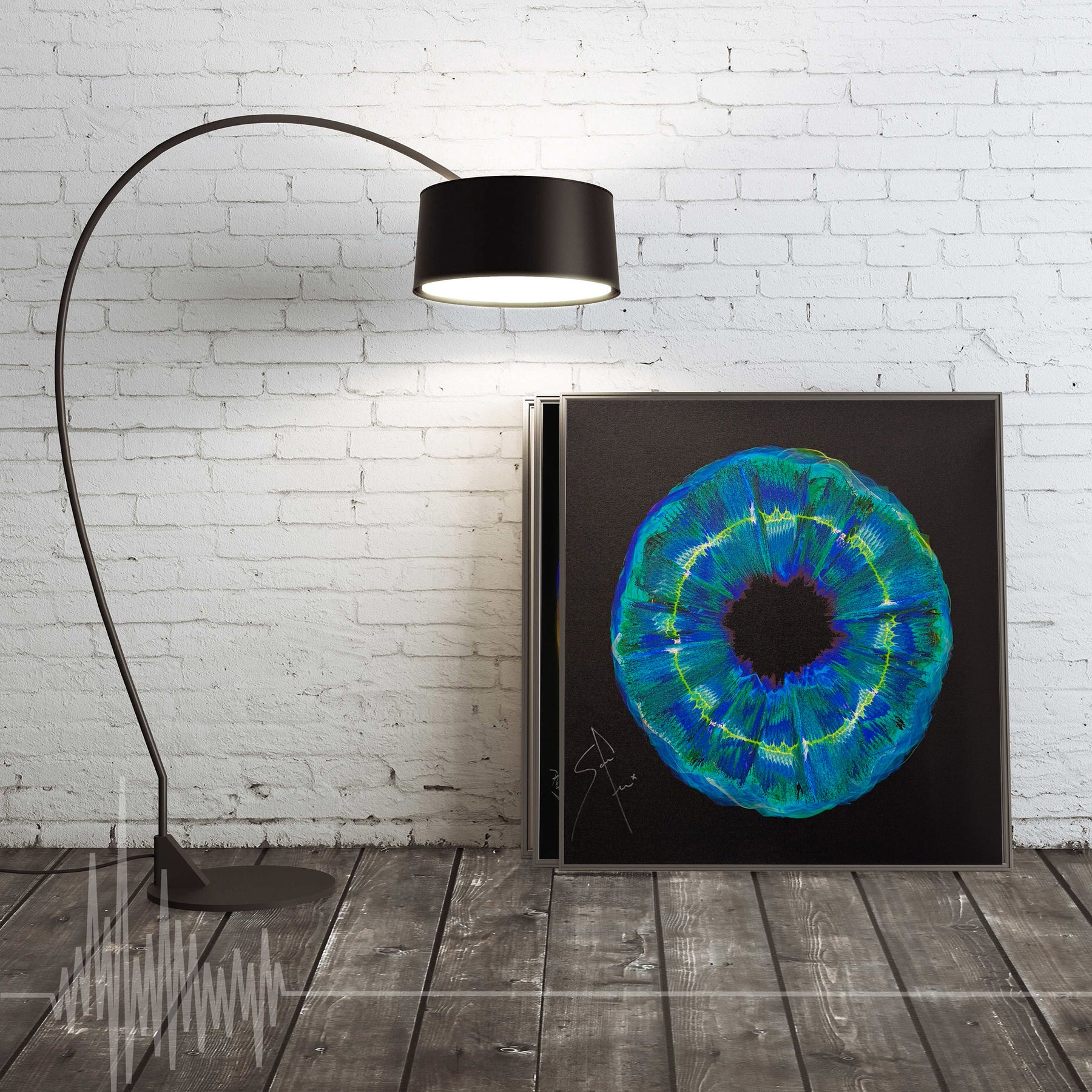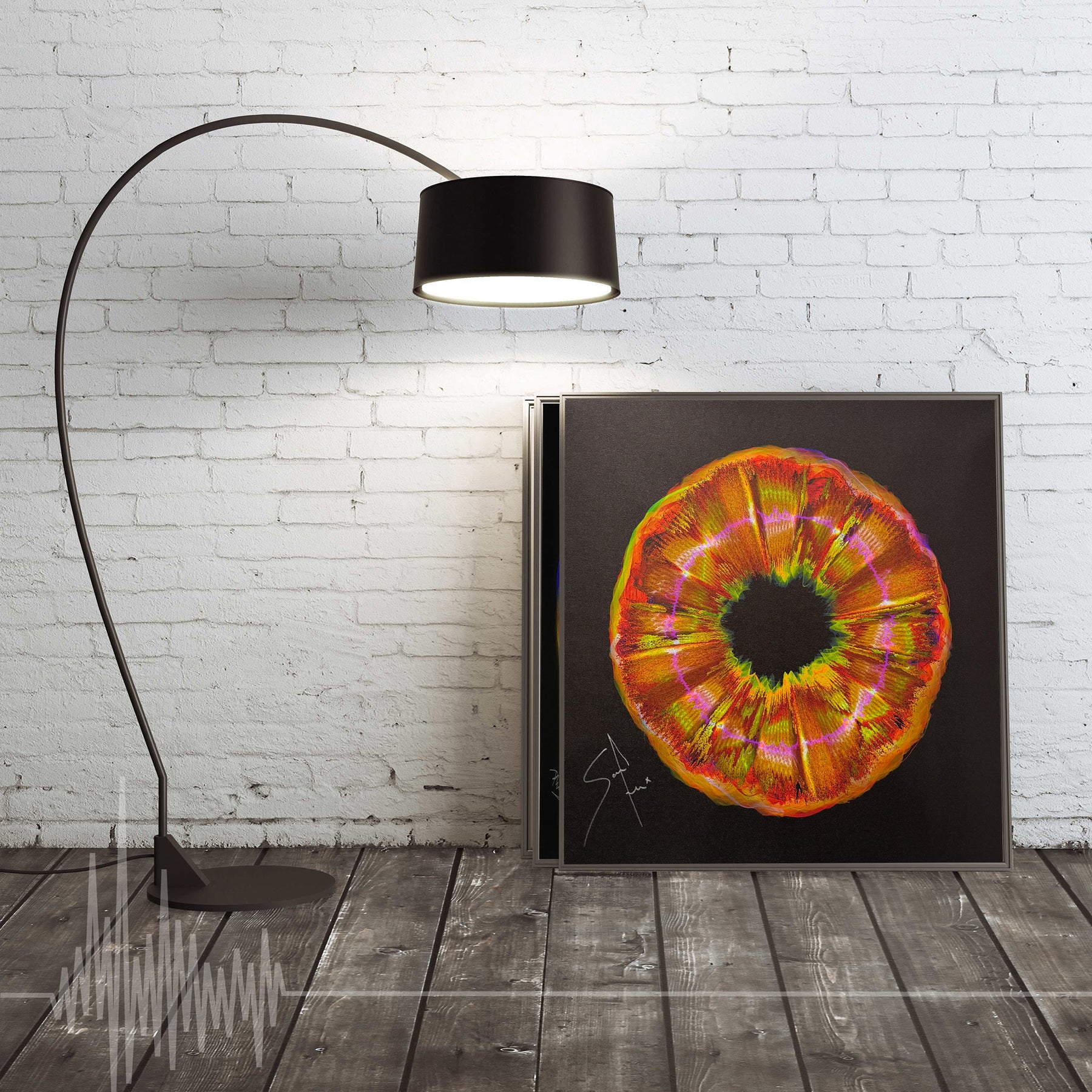 Our Originals measure 38″ x 38″ and often feature a lyric or the title of the song written by the artist in addition to their signature. These are much more limited edition – there is only one Original created per design. Originals sometimes come in alternate color palettes or wave designs to the prints.