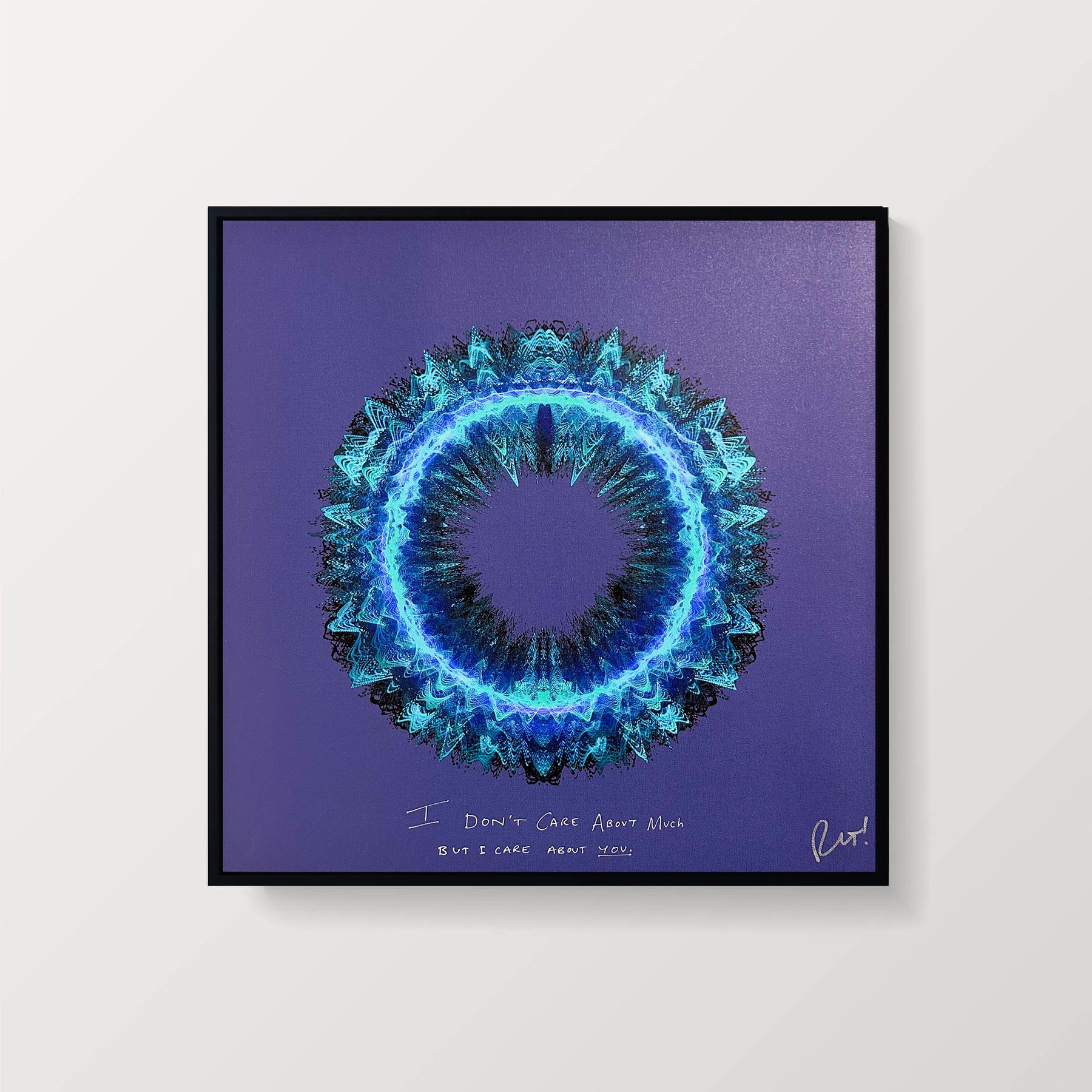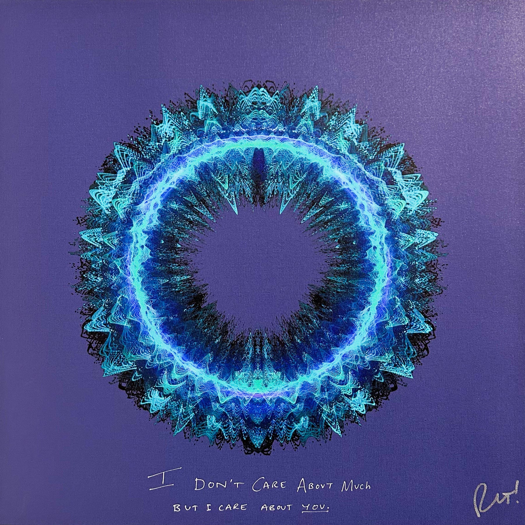 Our Originals measure 38″ x 38″ and often feature a lyric or the title of the song written by the artist in addition to their signature. These are much more limited edition – there is only one Original created per design. Originals sometimes come in alternate color palettes or wave designs to the prints.