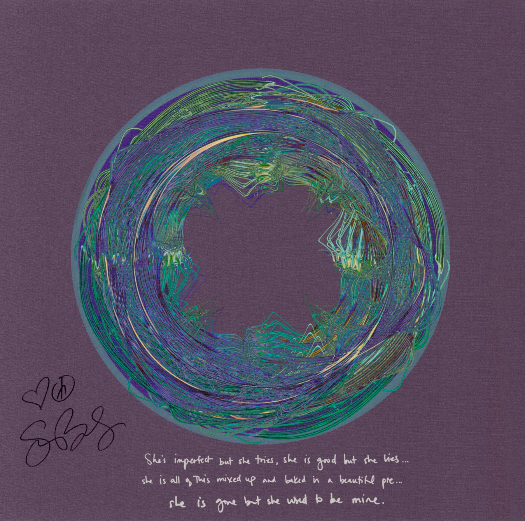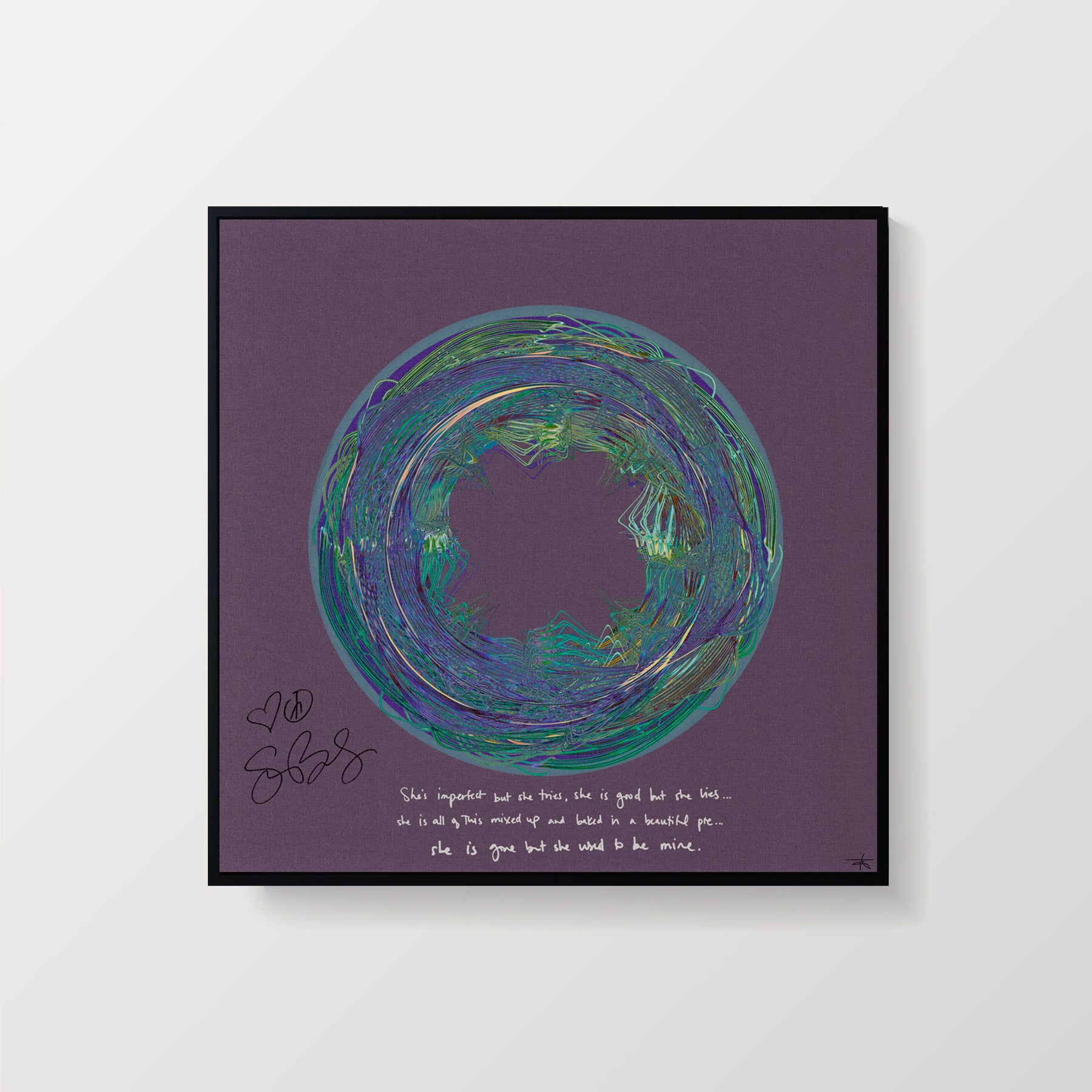 Our Originals measure 38″ x 38″ and often feature a lyric or the title of the song written by the artist in addition to their signature. These are much more limited edition – there is only one Original created per design. Originals sometimes come in alternate color palettes or wave designs to the prints.