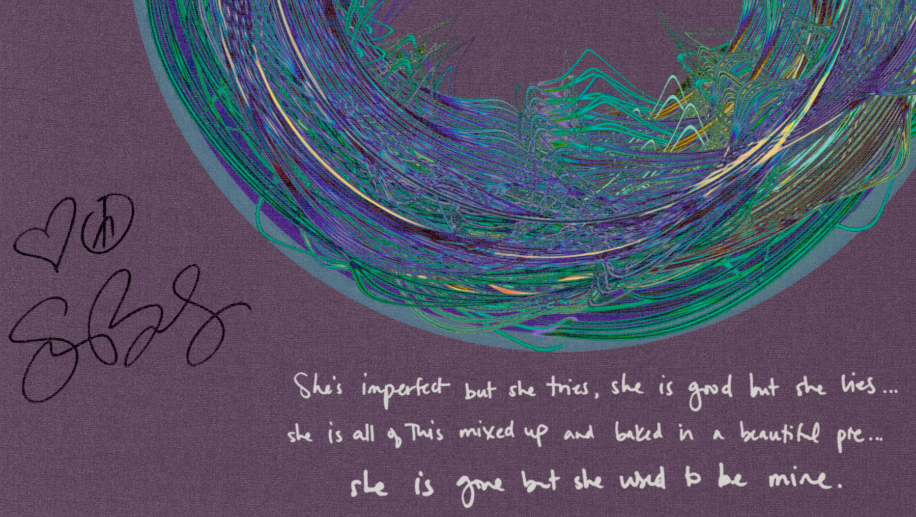 Artwork features a handwritten lyric from Sara that's been digitally added to every print: "She's imperfect but she tries, she is good but she lies...she is all of This mixed up and baked in a beautiful pie... she is gone but she used to be mine."