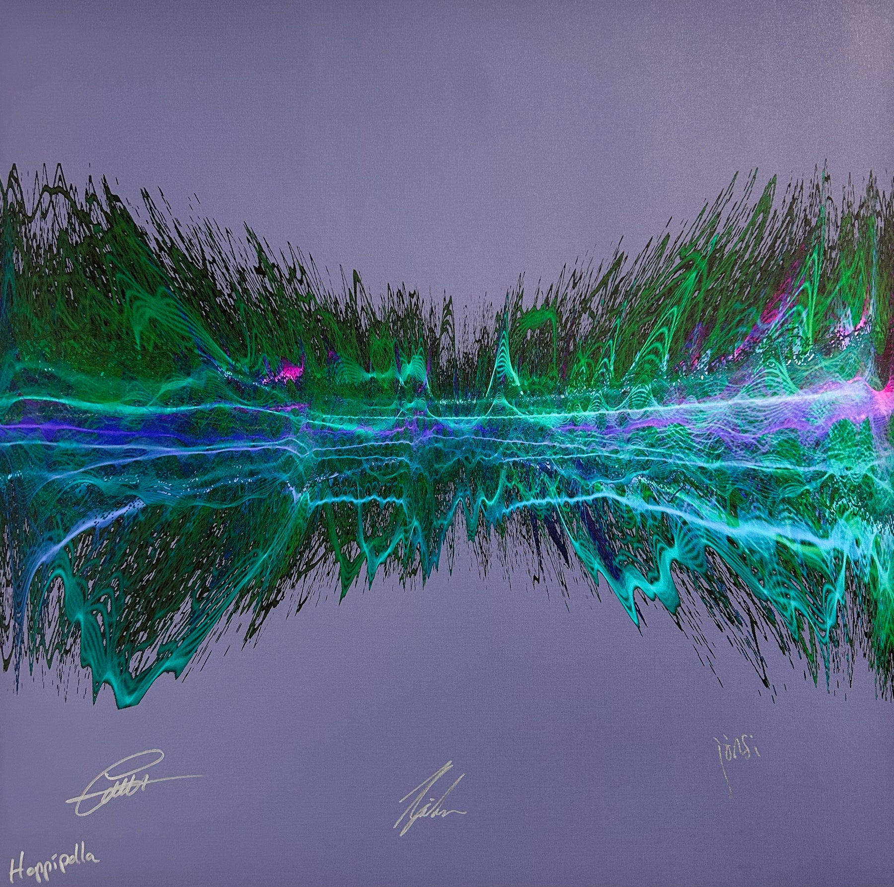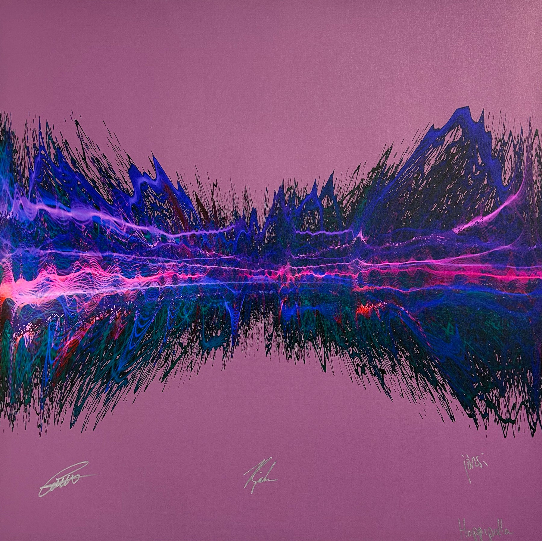Original Soundwaves Artwork created from the sound waves of Sigur Rós' song "Hoppípolla." Jónsi Birgisson, Kjartan Sveinsson, Georg Holm kindly signed each piece backstage before their show at Royal Albert Hall on October 2nd, 2025.