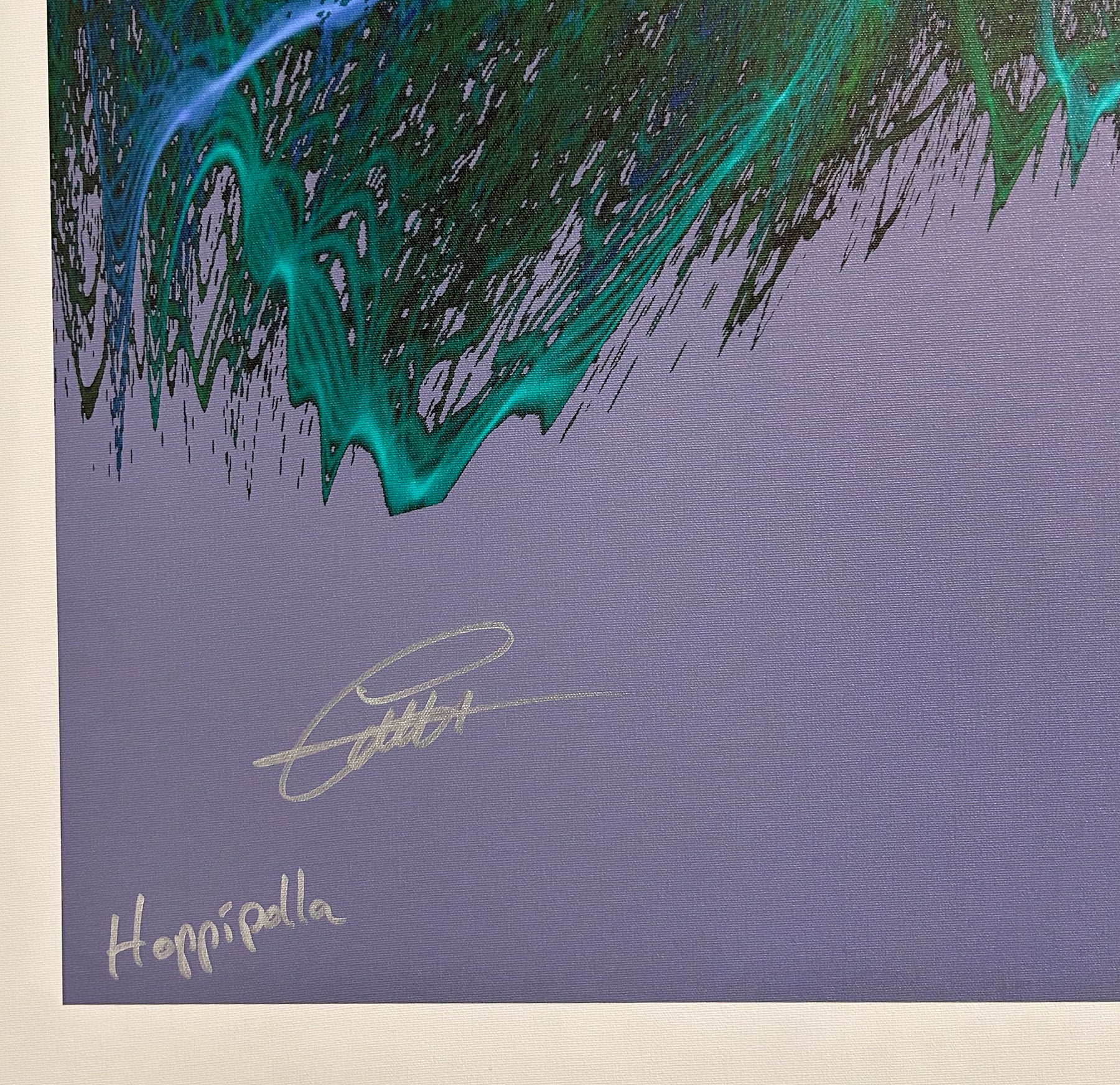 Purple Original:  Georg hand-wrote the song title "Hoppípolla" on the bottom left corner below his signature.