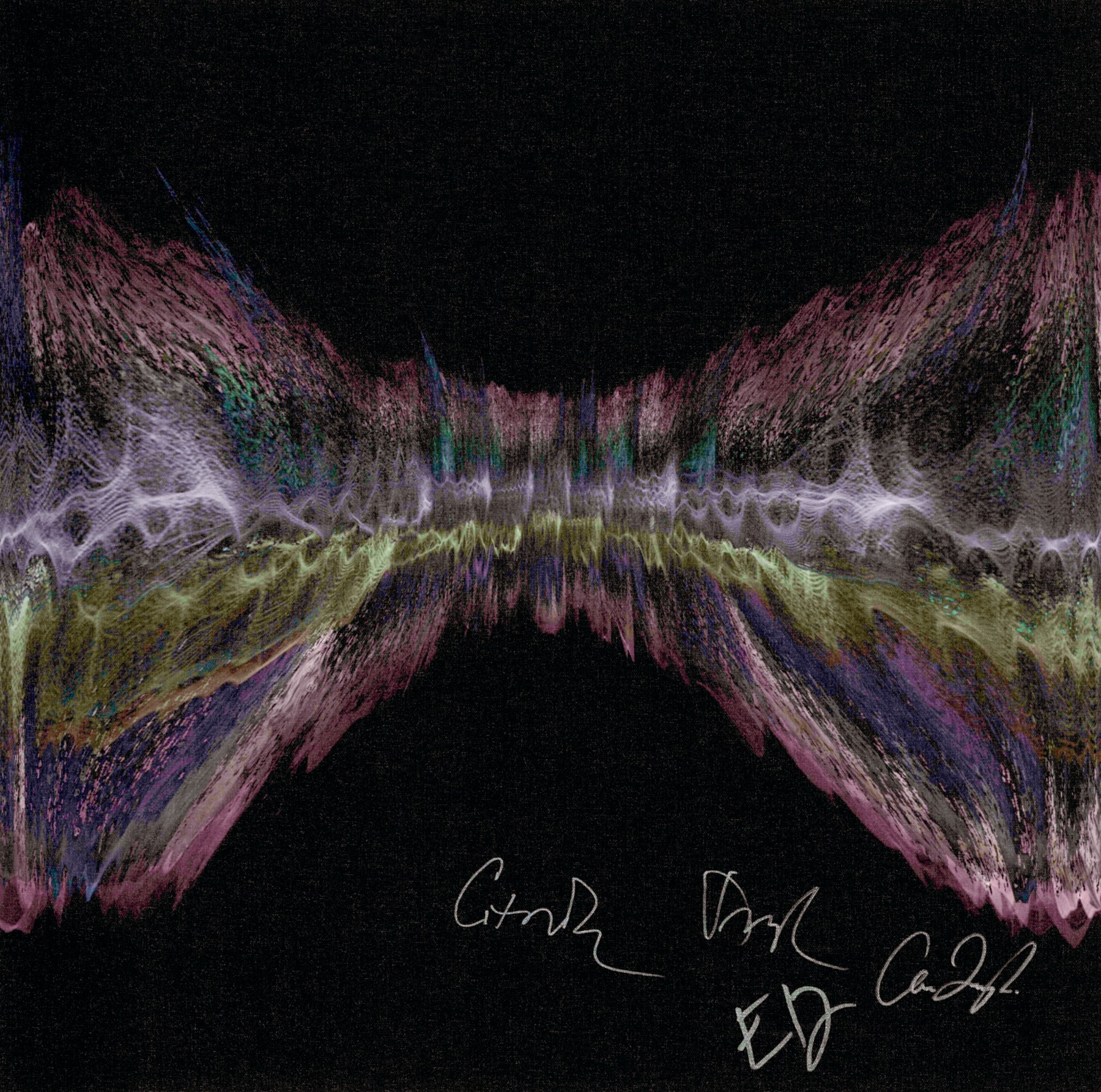 Our Originals measure 38″ x 38″ and often feature a lyric or the title of the song written by the artist in addition to their signature. These are much more limited edition – there is only one Original created per design. Originals sometimes come in alternate color palettes or wave designs to the prints.