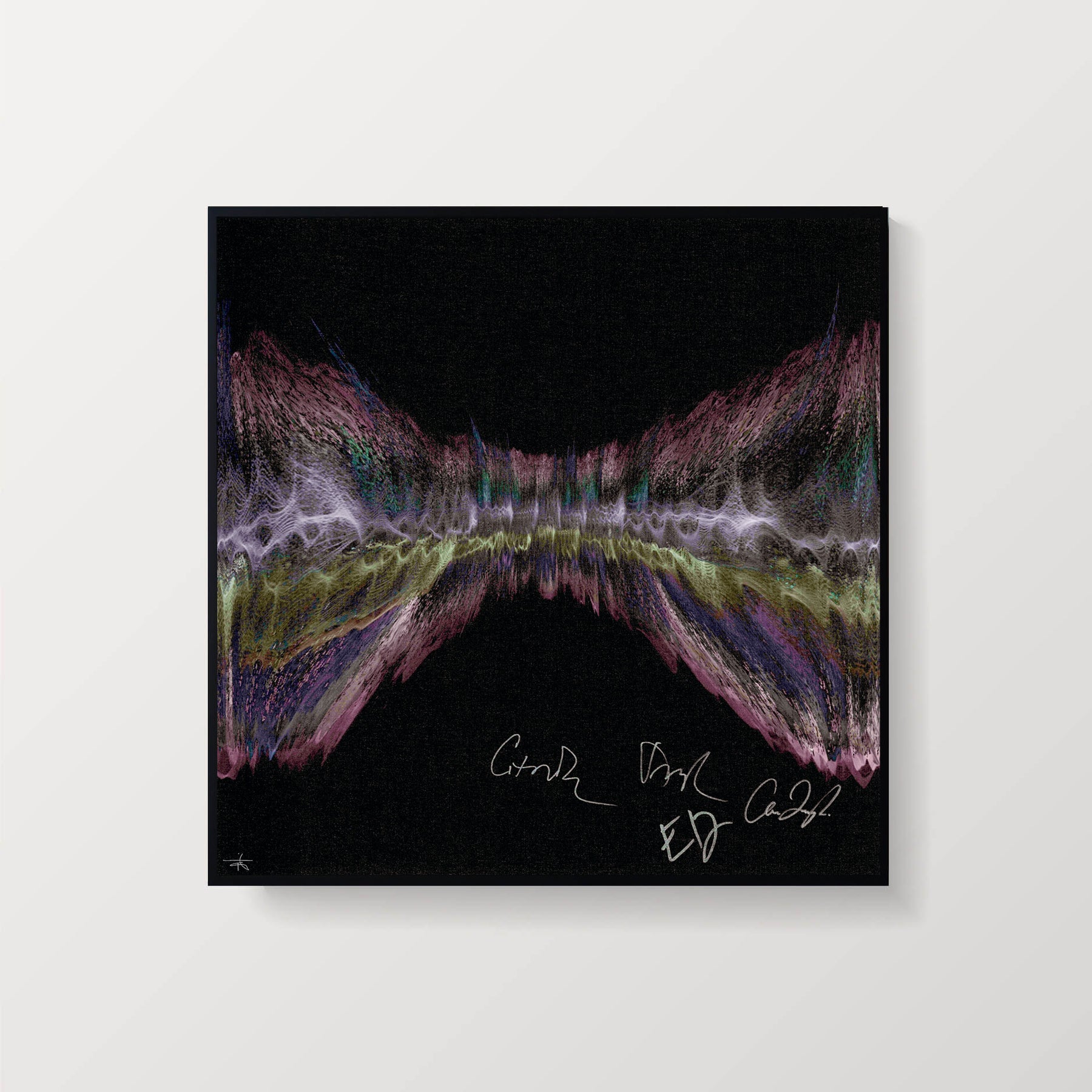 Each signed print measures 24″ x 24″ and is hand signed by the musician. They are part of a larger run of prints, typically with 50-100 copies signed in total. Our unsigned prints, which come in a standard and a mini size, feature the same design as the signed print, but do not have the musician's autograph. They are still limited edition and are signed by Soundwaves Art creator, Tim Wakefield.