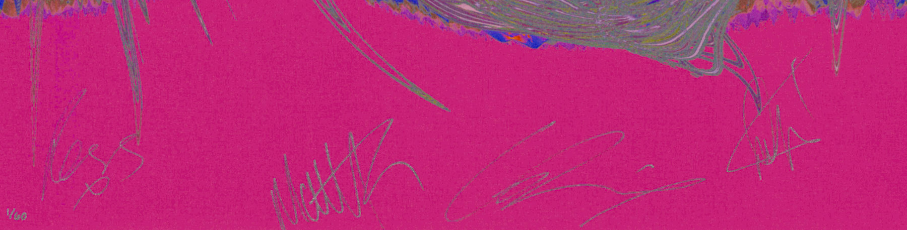 Each signed print measures 24″ x 24″ and is hand signed by the musician. They are part of a larger run of prints, typically with 50-100 copies signed in total. Our unsigned prints, which come in a standard and a mini size, feature the same design as the signed print, but do not have the musician's autograph. They are still limited edition and are signed by Soundwaves Art creator, Tim Wakefield.